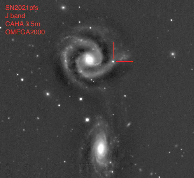 J-band image of the filed where type Ia SN 2021pfs occurred obtained with the OMEGA2000 camera mounted to the 3.5m telescope at the Calar Alto observatory. More info...